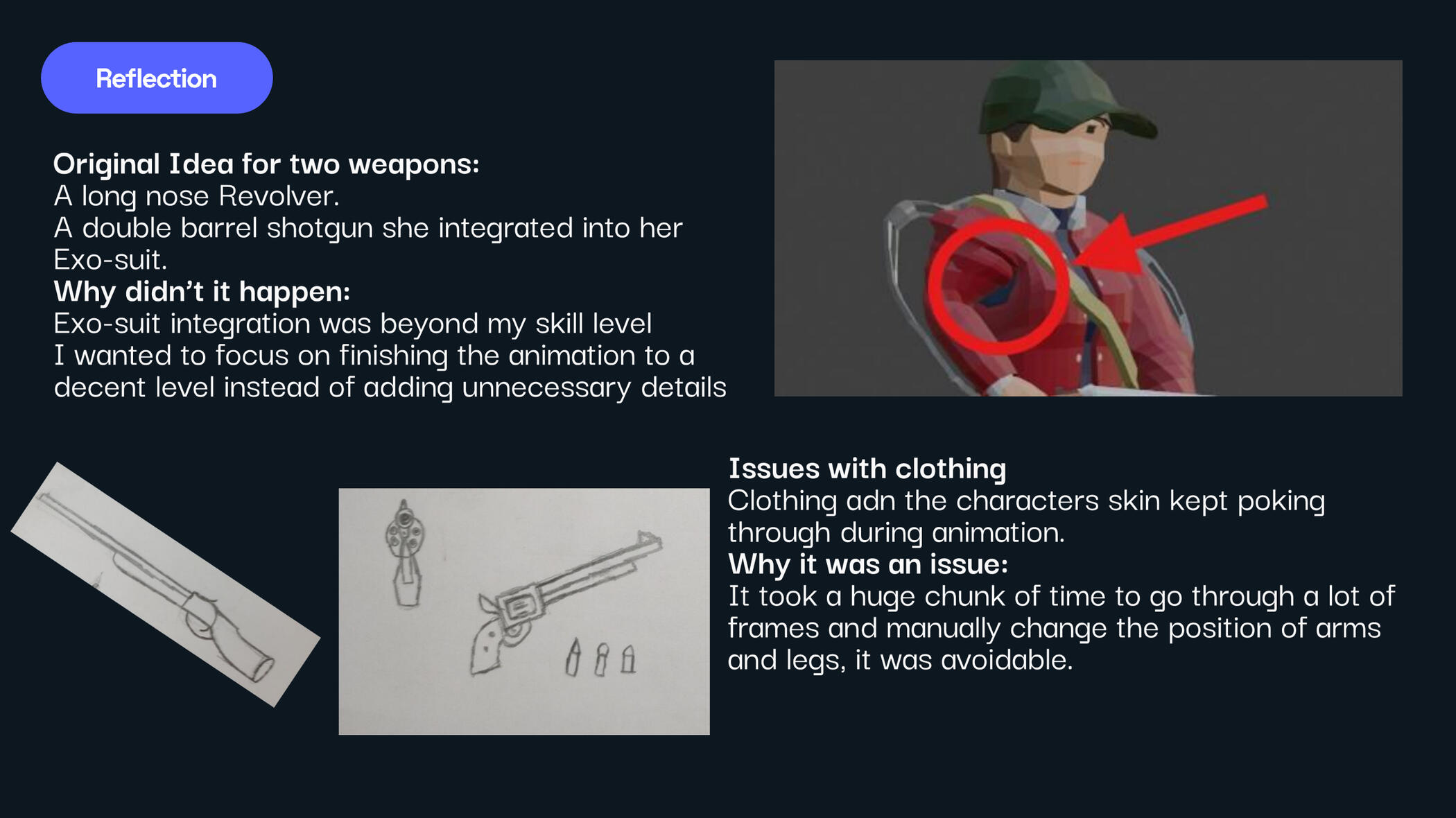“Aria Quinn” is a 5 second animation modeled in blender and textured in substance painter. The animations shows a walk and a run sequence that cycles into a jump and land animation then finished with “Aria” aiming and taking shots with her gun. It was then compiled in Premiere pro and VFX was added such as sound, muzzle flash and barrel smoke.
