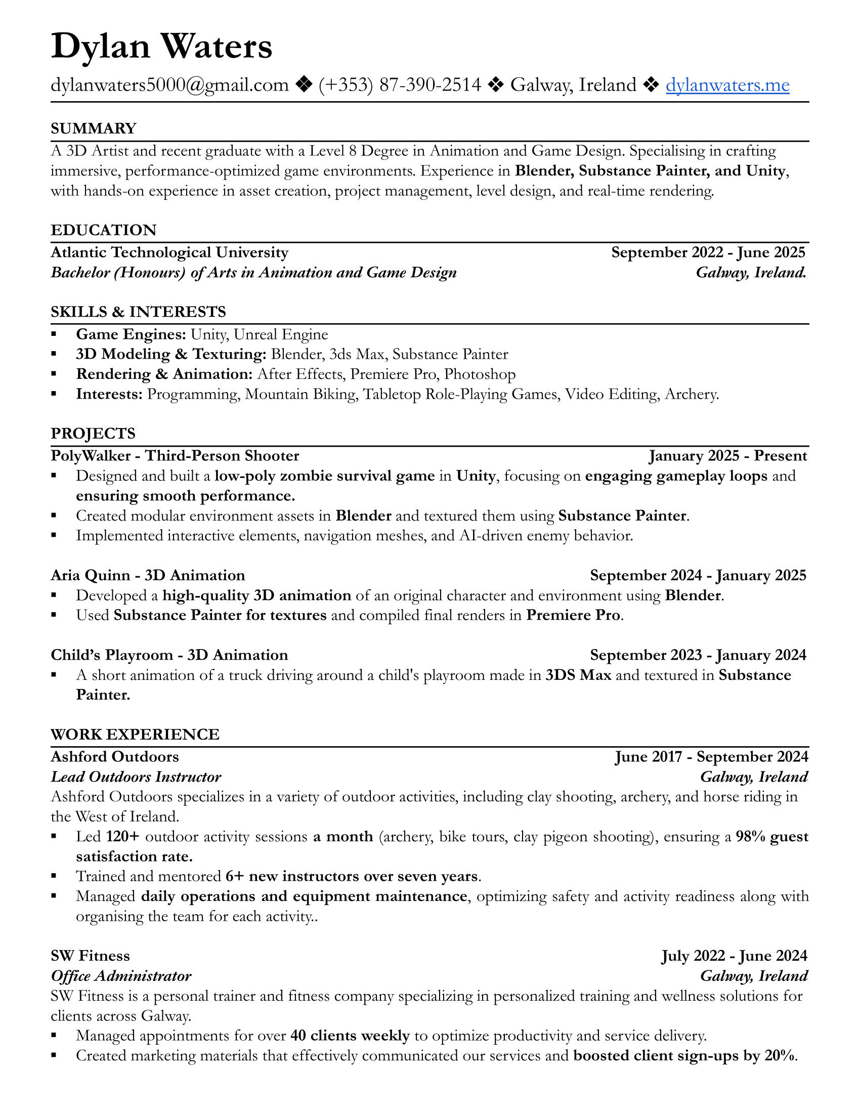 A 3D Artist and recent graduate with a Level 8 Degree in Animation and Game Design. Skilled in modeling, texturing, and optimization for games and animation using industry-standard tools such as Blender, Substance Painter, and Unreal Engine.Alongside my 3D Art, I’m exploring programming.